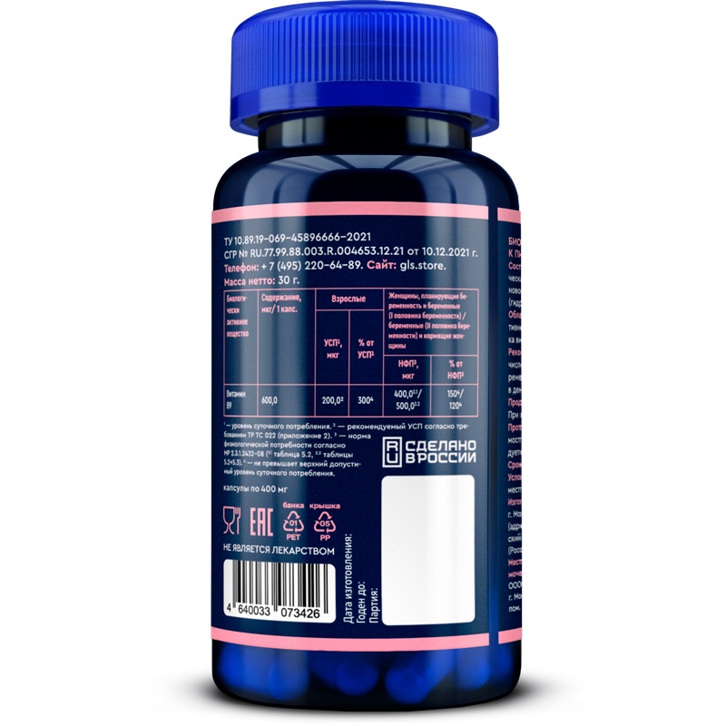 Интернет-магазин Body-Pit.Life предлагает купить Фолиевая кислота GLS Pharmaceuticals 600 мкг 60 капсул в Барнауле.