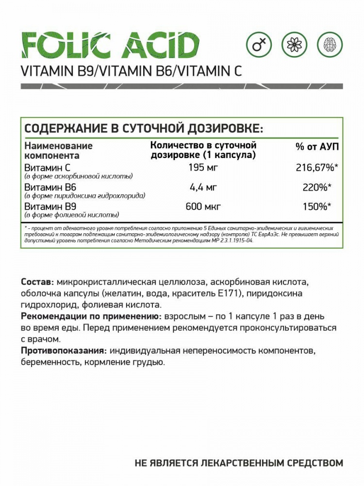 Интернет-магазин Body-Pit.Life предлагает купить Витамины NaturalSupp Folic Acid 60 капсул в Барнауле.