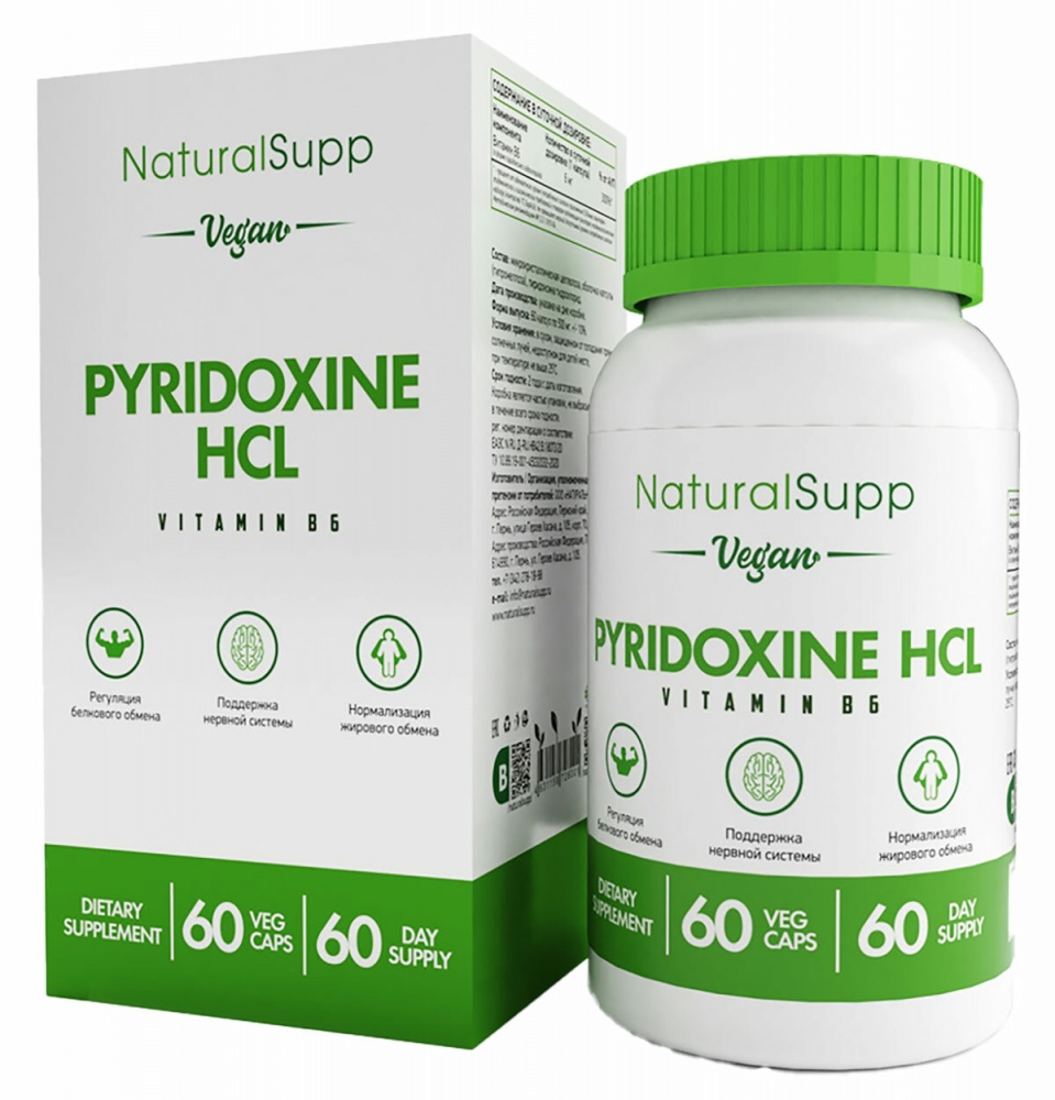 Интернет-магазин Body-Pit.Life предлагает купить Витамины NaturalSupp Vitamin B6 PYRIDOXINE HCL 6 мг 60 капсул в Барнауле.