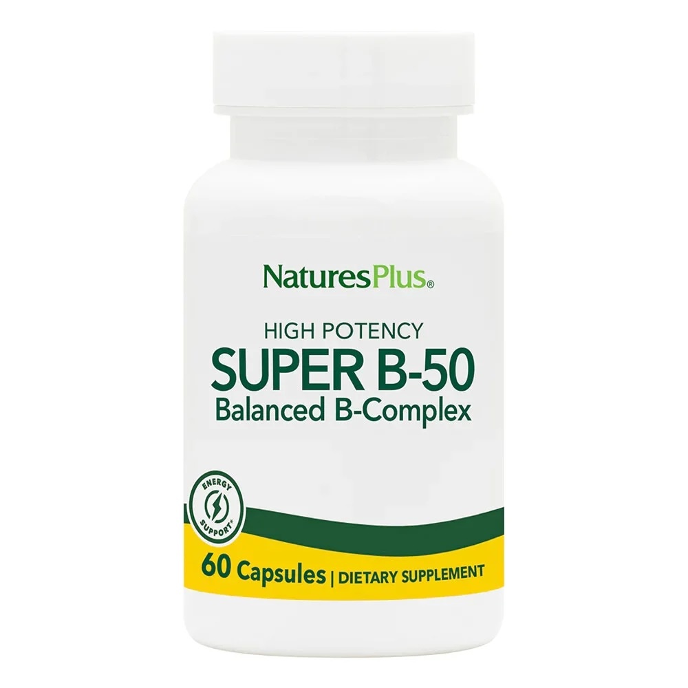 Комплекс витамина B-50, Super B-50 от Nature's Plus способствует укреплению иммунной системы, производству клеточной энергии, положительно действует на общее состояние здоровья человека.