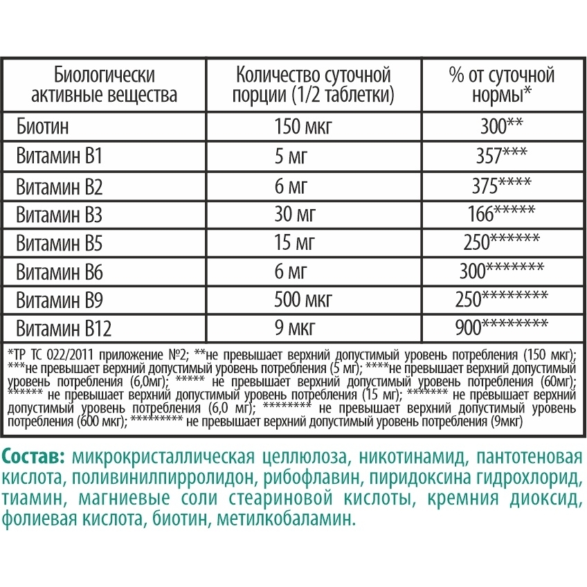 Витамин В12 — способствует нормализации работы нервной системы, участвует в регуляции энергетического обмена, снижает усталость и утомляемость. Стимулирует кроветворение, синтез и созревание эритроцитов — красных клеток крови.