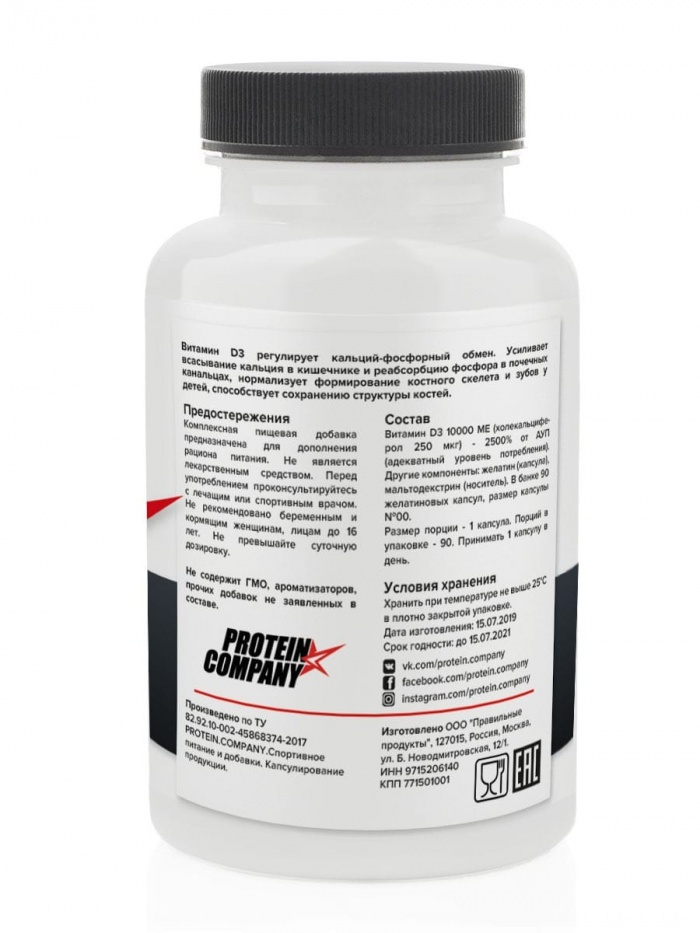 Витамин Protein Company D3 10000 IU 90 капсул