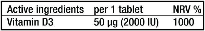 Vitamin D3 от BioTechusa снабжает человека "солнечным витамином" изнутри: в каждой таблетке он содержит 50 мкг холекальциферола*, что соответствует 2000 МЕ витамина D – это 500% суточной нормы для человека.