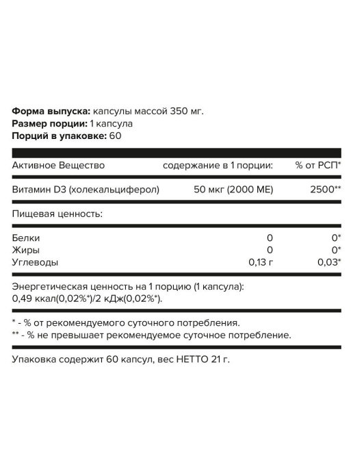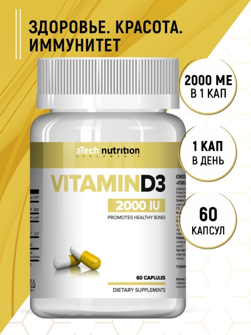 Витамины aTech Nutrition Vitamin D3 2000 МЕ 60 капсул