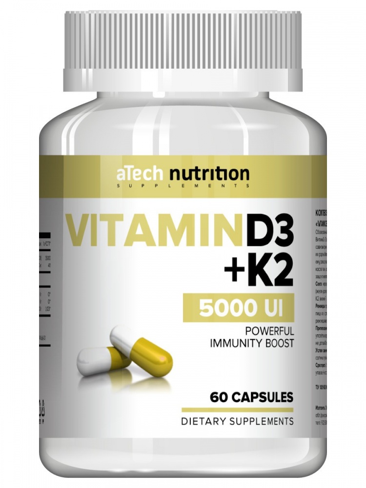 Витамины aTech nutrition VITAMIN D3 5000 МЕ + К2 60 капсул