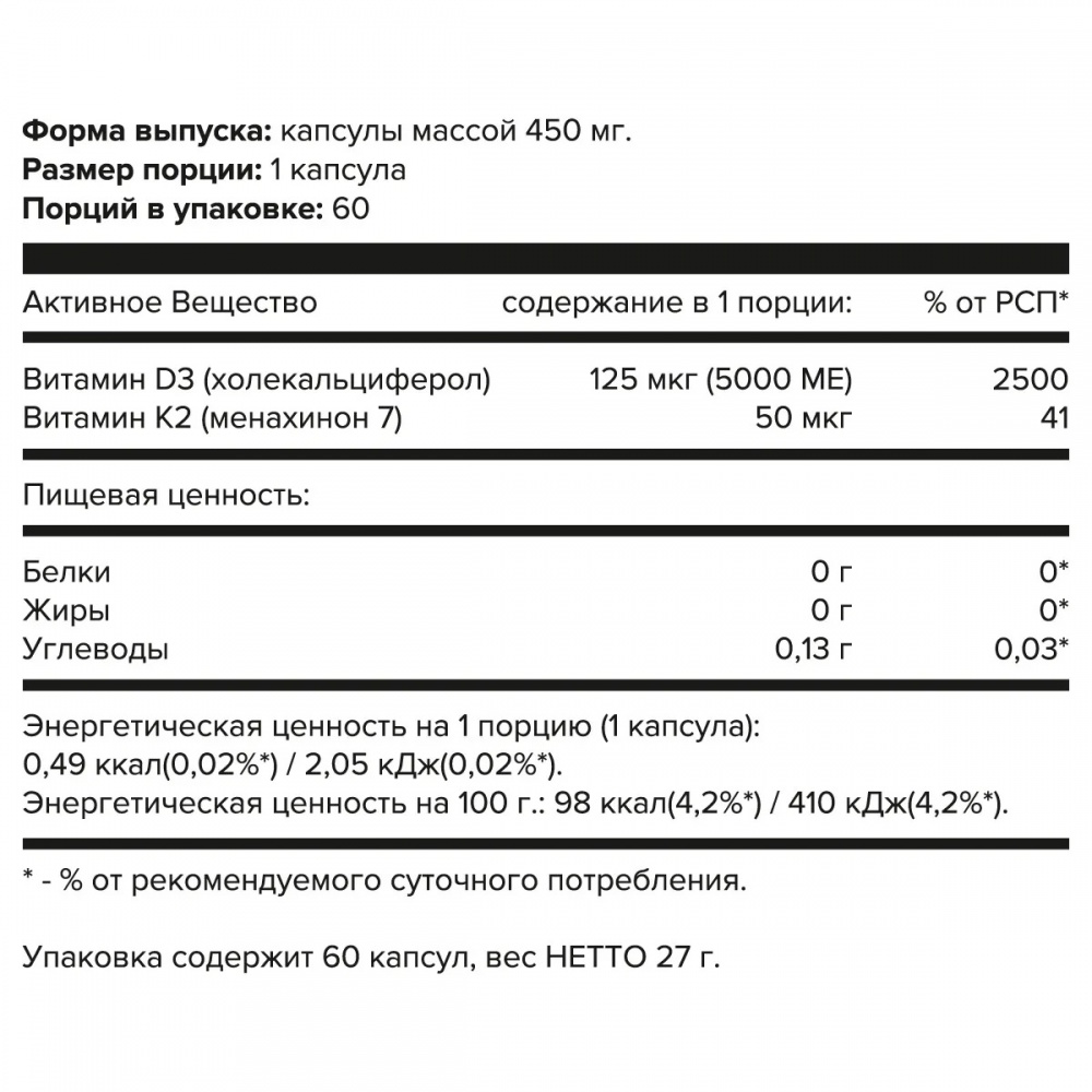 Витамины К2 и D3 выполняют одинаковую функцию, но с разных «ракурсов», поэтому совместный прием этих двух веществ даст более мощный результат, чем принимать их раздельно.