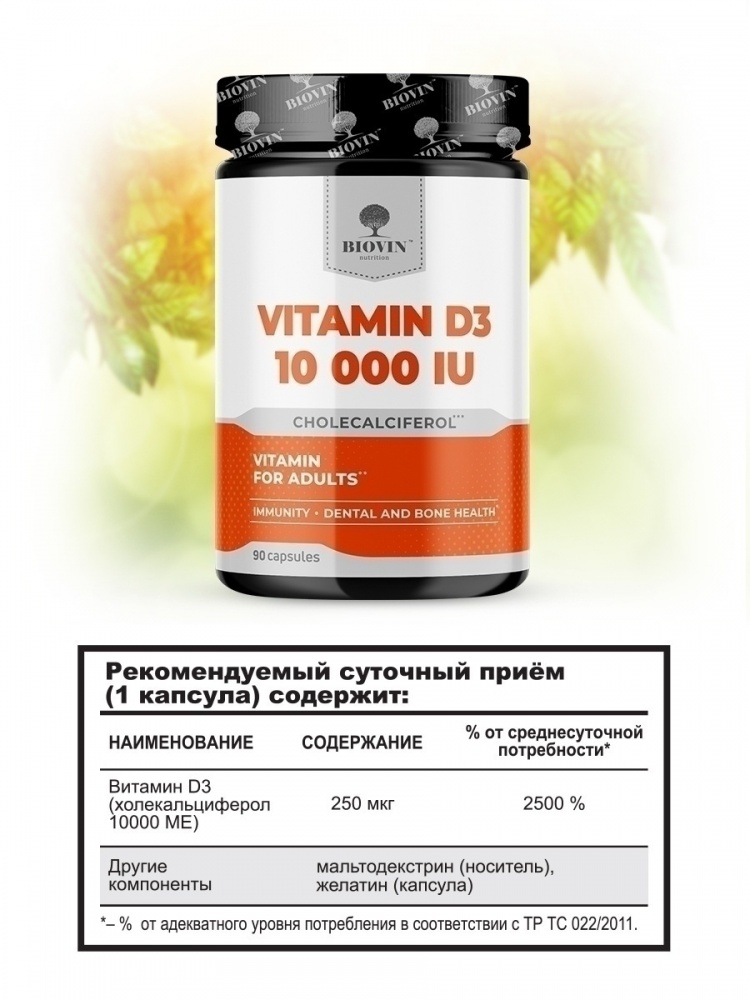 Витамины Biovin vitamin D3 10000 IU 90 капсул
