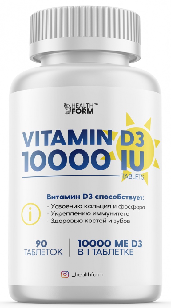 Vitamin D3 10000 IU от HEALTH FORM - это источник витамина D3 (холекальциферола) в таблетках.