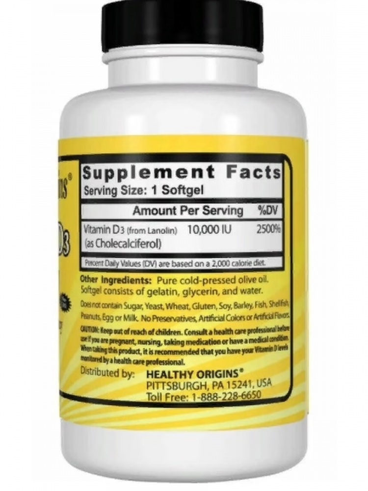 Витамин D3 10000 МЕ от Healthy Origins - это одно из ключевых питательных веществ, изготовленное в форме жидкости в желатиновой капсуле с высокой абсорбцией. Витамин D3 вырабатывается в организме от солнечного света, и лишь небольшое его количество может быть получено из пищи. Зимний сезон и множество солнцезащитных продуктов подавляют способность организма вырабатывать оптимальные уровни витамина D. В результате чего употребление Витамина D3 в виде пищевой добавки становится еще более необходимым, чтобы обеспечить ваш организм его достаточным количеством.