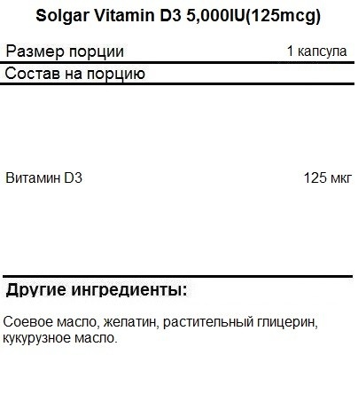 Витамины Solgar Vitamin D3 5000IU 60 капсул