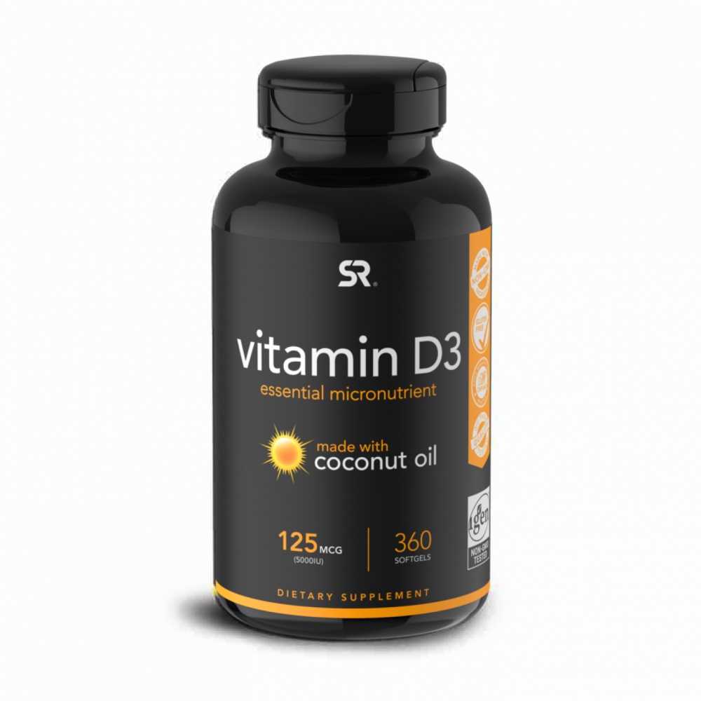 Витамины Sports Research D3 с кокосовым маслом 5000 ME 360 капсул