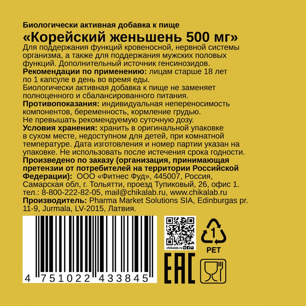 Интернет-магазин Body-Pit.Life предлагает купить БАД к пище Chikalab Корейский женьшень 60 таблеток в Барнауле.