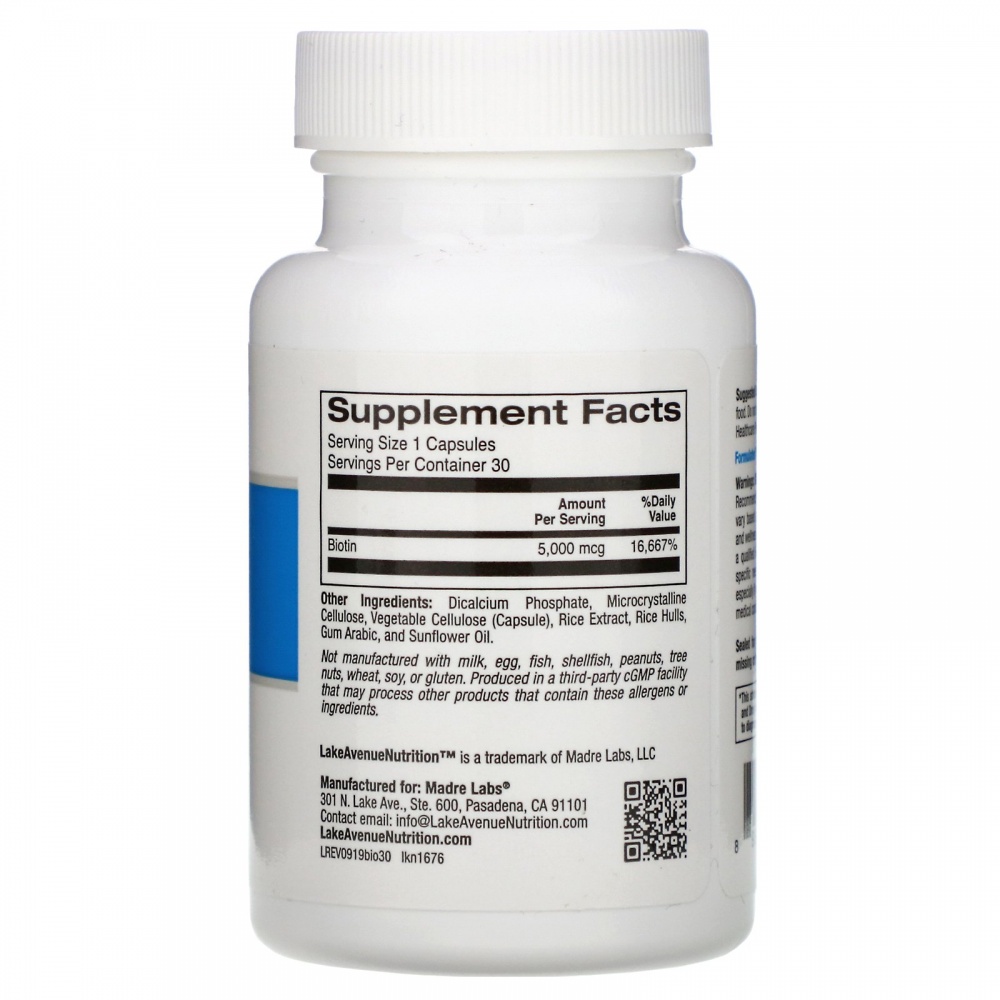 Витамины Lake Avenue Nutrition BIOTIN 5000 mcg 30 капсул