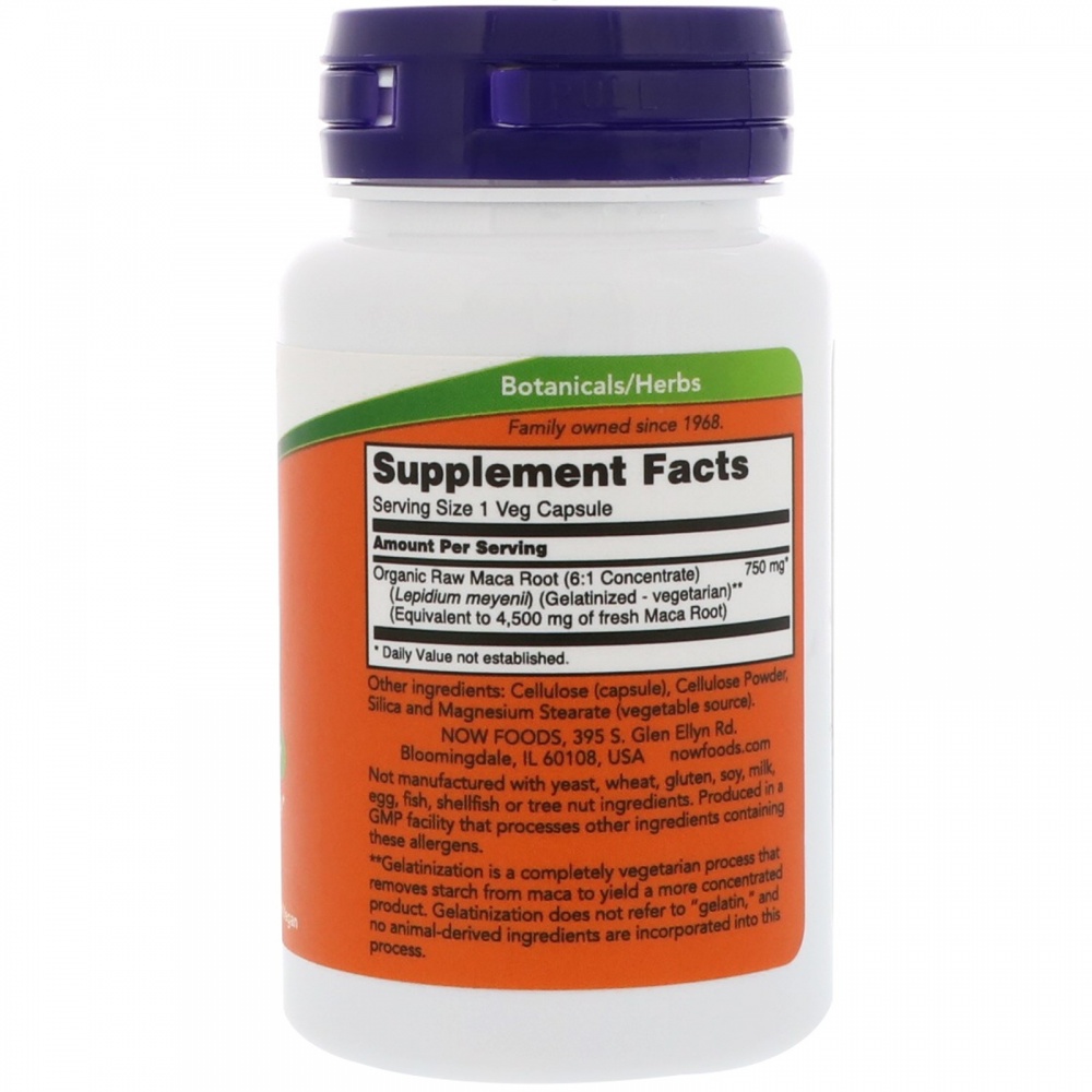 Витамины NOW MACA Raw 750 мг 30 капс