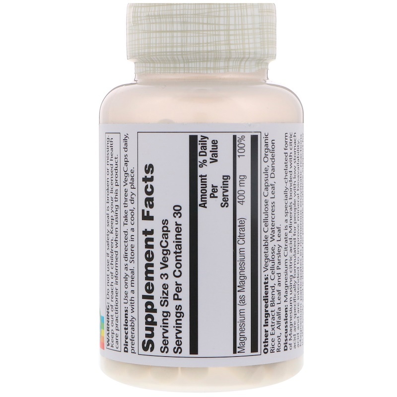 Витамины Solaray цитрат магния 400 мг 90 капсул
