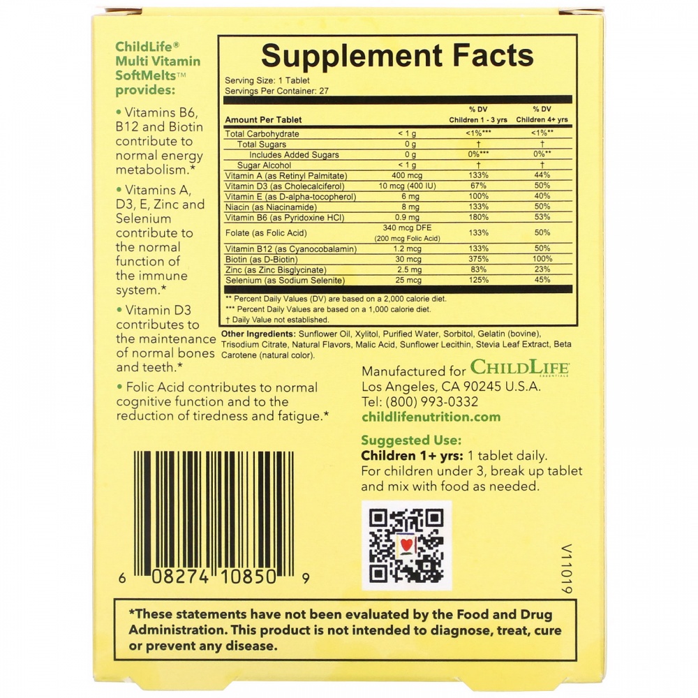 Мультивитамин SoftMelts от ChildLife содержит:
