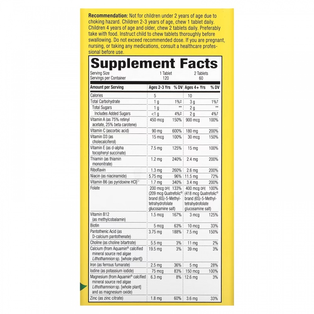 Применение: Продукт не предназначен для детей младше 2 лет, поскольку существует риск того, что они могут подавиться. Детям в возрасте 2&8210;3 лет принимать по 1 жевательной таблетке в день. Детям в возрасте от 4 лет принимать по 2 жевательные таблетки в день. Принимать желательно во время еды. Ребенок должен тщательно разжевать таблетки перед проглатыванием.