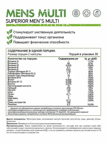 Интернет-магазин Body-Pit.Life предлагает купить Витамины NaturalSupp Multi Man 60 капсул в Барнауле.