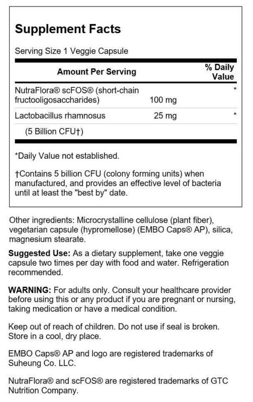 Аминокислота Swanson Lactobacillus Rhamnosus with Fos 5 Billion Cfu 60 капсул